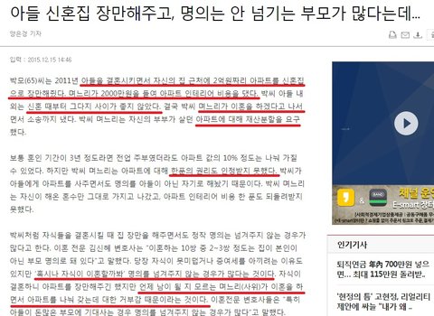 아들 가진 어머니들은 아들 집 해줄 때 참고하세요.