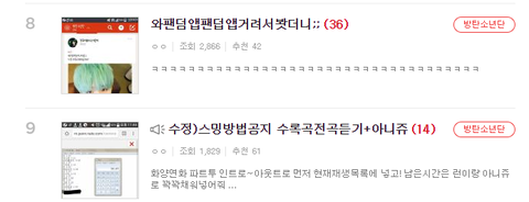 이건 저번에 캡쳐했으나, 내 대뇌가 기억하지 못하고 한참을 8.BTS 에 넣어놓았던 (7위 빼고) 1위부터 9위까지 방탄소년단이 차지한거! ^!^