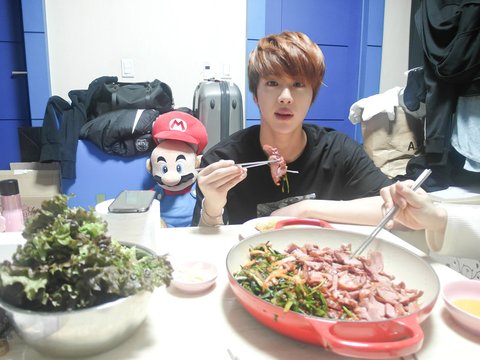 블로그 사진인데 옆에 저 하얀 손은 누구? 지민이맞지? 내가 생각하는 지민이 맞나? (이 와중에 젓가락질하는 저 손이 너무 귀엽다...)