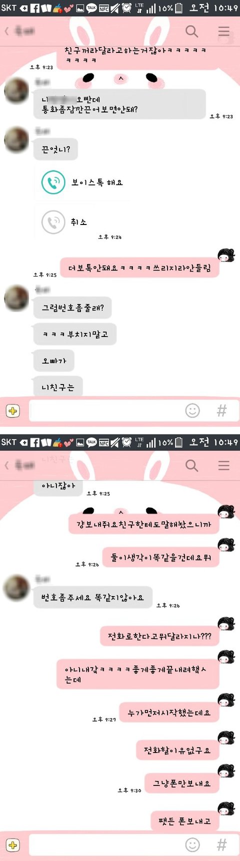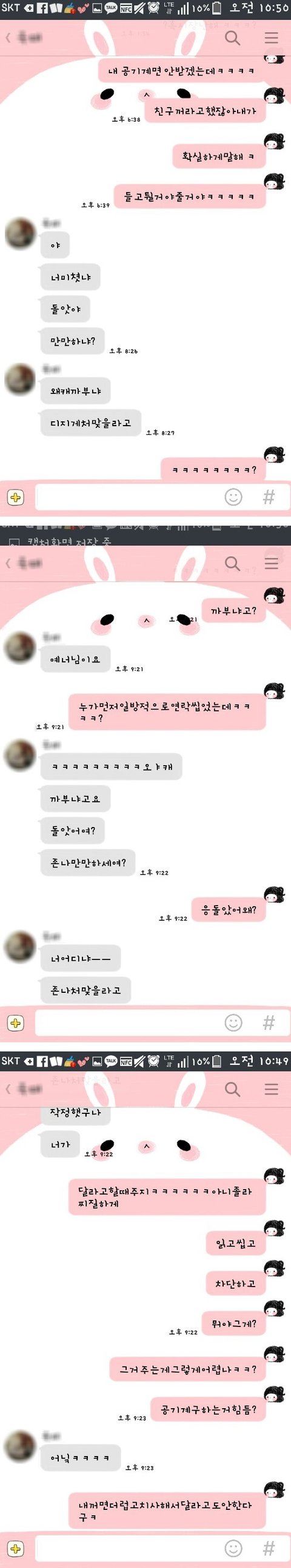 페메차단하고 카톡읽고씹고ㅋㅋㅋㅋㅋㅋㅋㅋㅋ하길래