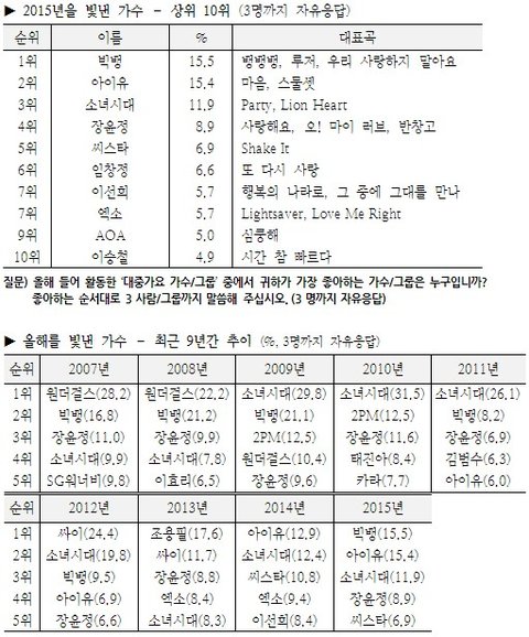 빅뱅 남자아이돌 최초 선호도 1위래