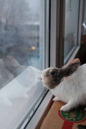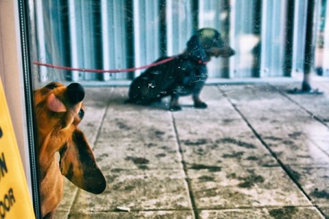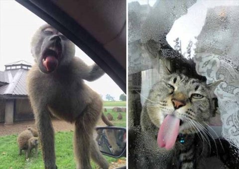 유리창을 핥는 동물들