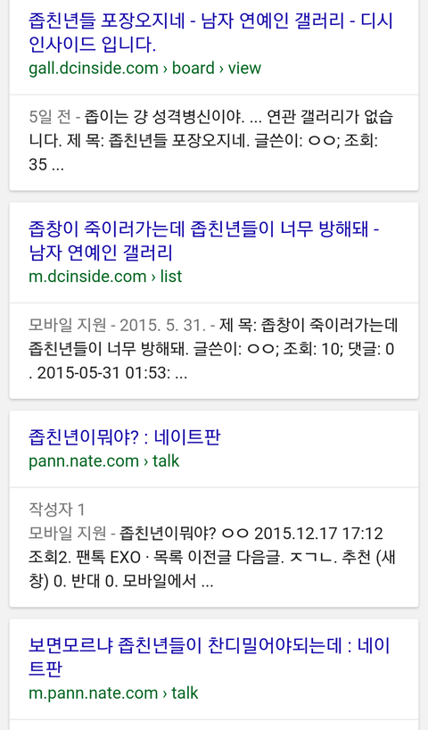 남연갤에서 디오 별명이 좁이여서 디오팬들보고 좁친년들이라고 부르는데 세훈이 짤 도배하면서 까는년이 세훈이 팬들보고 삽친년들이라고 한거보면 디오팬 빼박임 ㅋㅋㅋㅋ 디오팬들은 자기네들이 들은 말을 꼭 다른팬들한테 똑같이 부르잖아 ㅋ 디오팬들아 악개짓 그만해라