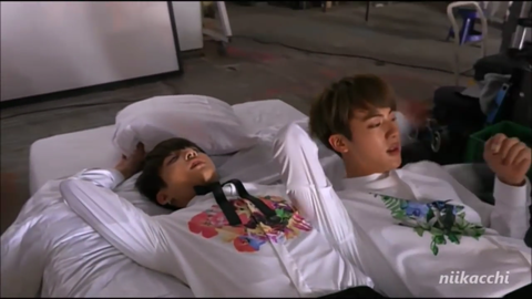 그래서 꾹이가 석진이 눕게 팔 옆으로 치우려고 하니까 석진이가 베게 정리하듯이 꾹이 팔 자기 머리 있는곳으로 옮겨서