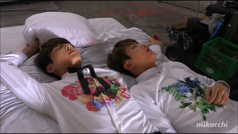 처음에 전정구기가 아니쥬 뮤비 찍고 힘들어서 한쪽팔 이케 옆에놓고 누움