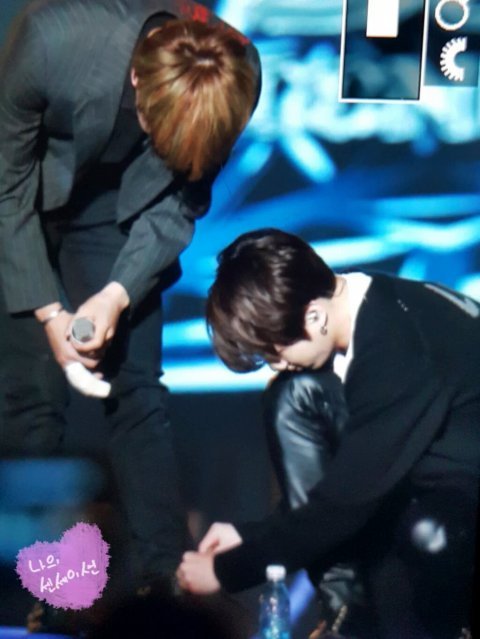 근데 나만 느끼는지 몰라도 석진이가 정국이랑 의외로 참 잘어울리는듯 신발끈 묶어 줄때도 그렇고..
