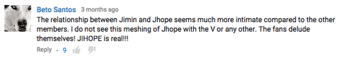어떻게 생각하시나용... 캡쳐를 계속할수 없어서 몇개보이는것만 했는데 많네요..;; 제가 일부러 찾은게 아니라 방탄밤에서 꽁냥대는영상있으면 팬분들이 흔히 하는코멘트입니다..ㅎ