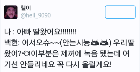 백현: 우리 딸 왔어? ㅋㅋ
