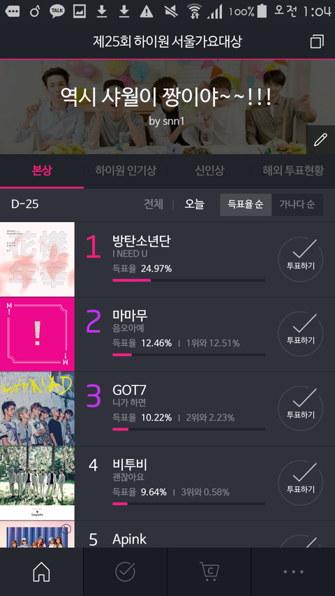 우리 투데이 득표율은ㅋㅋㅋㅋ
