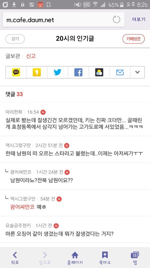 그럼 이번엔 강동원 글에 달린 남초&기사 댓글 한번볼래?ㅋㅋ