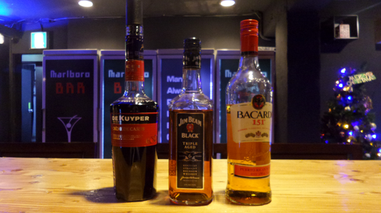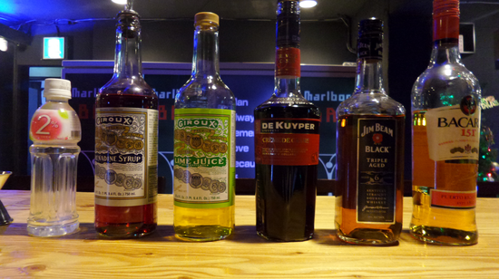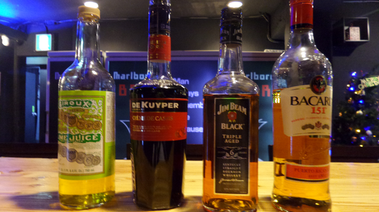 그래서 버번 위스키와 바카디151(75.5 도 ㄷㄷㄷㄷㄷㄷ) 거기에 카시스를 섞어 보았습니다.