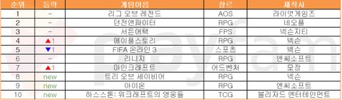 지스타 2015에서 많은 유저들의 시선을 끌었던 '아르피엘'이 한 주 만에 순위권에서 사라져 아쉽지만 타 넥슨 게임들의 활약이 눈에 띈다.