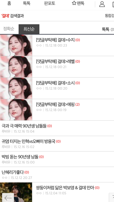 어제부터 모팬덤이 걸데팬코하면서 이간질중