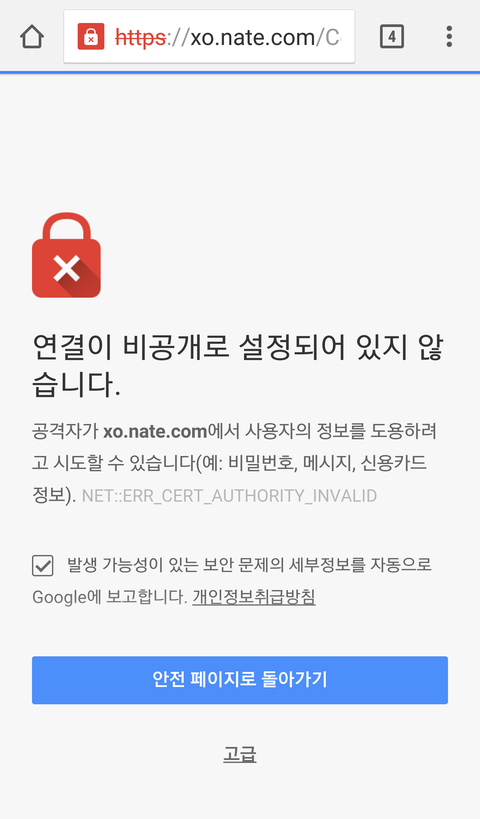 계속 진행하면 위험하다하고 안전하지 않다하고