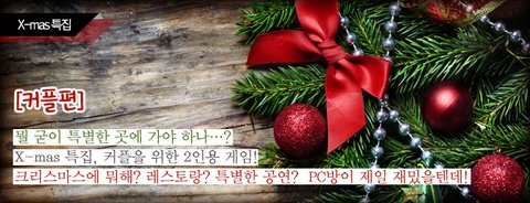 올해는 에디터가 특별히 '커플을 위한 2인용 게임'을 준비했다. 전국 모든 PC방에서 즐길 수 있으니 성탄절에 특별한 장소를 예약 못 했다면 PC방으로 모이자. 또한 커플이 아니어도 할 수 있는 게임이므로 솔로들은 친구와 함께 즐겨보자! 에디터는 집에서 TV 볼 예정이다!