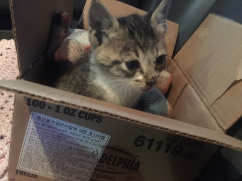 대구 칠곡에서 아가 냥이가 카페앞에서 울고 있어서 냥줍 했습니다 ㅠㅠ 누가 유기한 것 같기도 하구요
