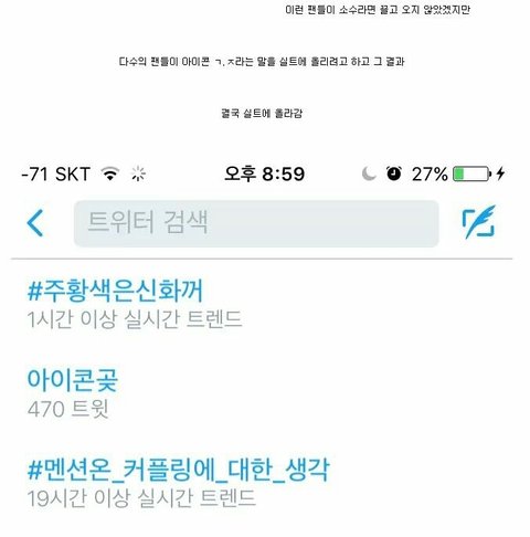 근데 이건 아무리봐도 자기 가수 사랑한다는 트렌드를 올려야하는게 아니라 아이콘 가수에게 성희롱한 사과 트렌드를 올려야하는게 맞다고 봄.