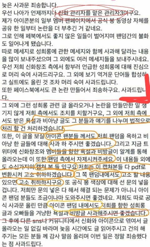 그리고 해시태그 만들어서 사과하고있다고 팬들이 말하는데, 진정한 사과 하는 팬들은 아주 아주 아주 극소수고 대부분이 미안~내 잘못이야ㅋ 근데 니네 이거 사과해라. 왜 니넨 사과안해? (잘못한게 없는데 사과하라함) 이 투고, '아이콘곶' 이라는 트렌드를 세시간이상 실시간트렌드에 올릴 단합력이 있으면, 사과 해시태그도 그렇게 단합해서 트렌드에 올려야하는게 맞다봄. 할수있는 사람들이 끝까지 자기 자존심들 지키겠다고 제대로된 사과 안함. 성희롱은 엄연한 범죄입니다. 정신들 좀 차렸으면 좋겠음