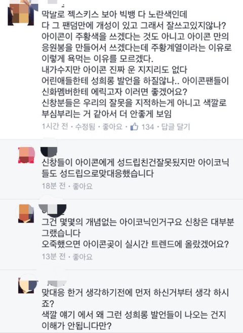 상황설명 : 오늘 아이콘의 첫 공식 응원봉이 나왔는데 그게 색깔이 주황색이라며 엄청나게 저격받음.