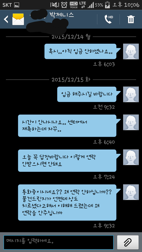 입금후 답장도 부탁하고 물을때마다 연락없고