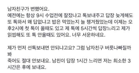 사진의 글에서 처럼 서서히 남자친구가 변해가는걸 느꼈습니다.