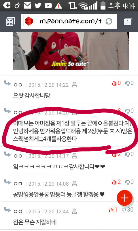 톡선에 호비 글있어서 뿌뜻하게 글보고있었는데 댓글에 아미칭찬하는 글이…♥그리고 그 대댓글 아미정음 뭔뎈ㅋㅋㅋㄱㅋ 진짜 너무너무 귀엽다 보고 피식했음 그리고 막 우리아미들 너무 착해서 바보같다는데 그냥 우리 동네바보하자!!ㅋㅋ