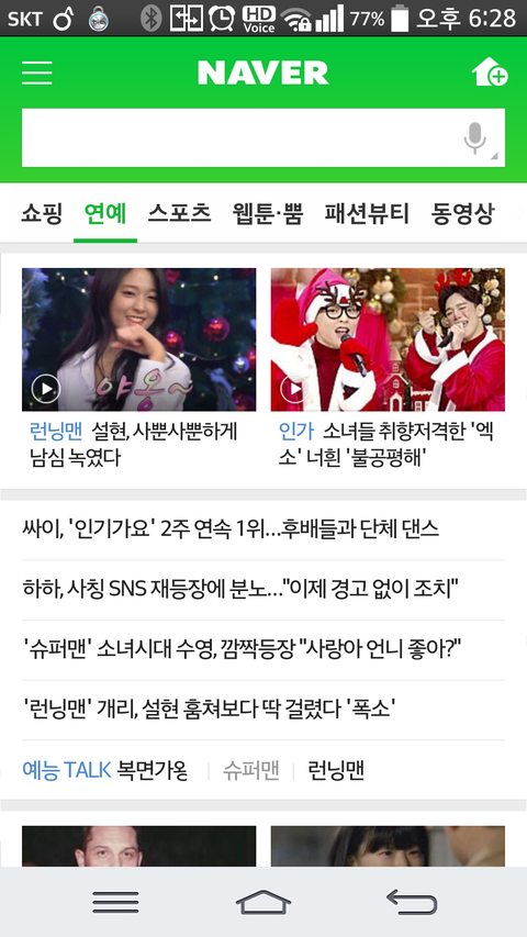 네이버 연예면메인에 시우민산타ㅋㅋ