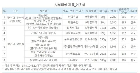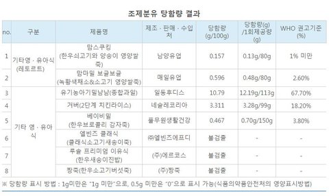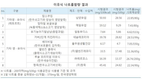 조제분유 10종과, 이유식 8종 모두 당, 나트륨 함량 기준에는 적합하나 제품간 함유량 차이가 크게 나타났다고 합니다.