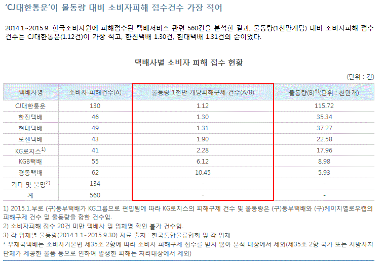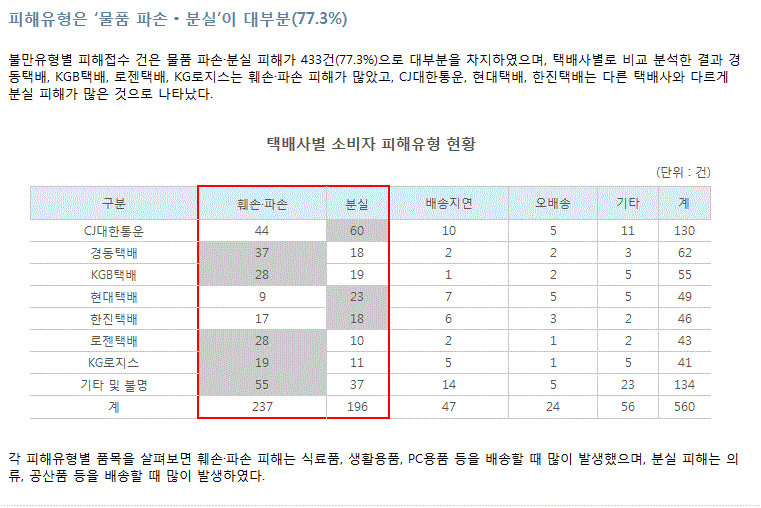 이에 한국소비자원에서 택배회사에 대한 소비자 피해현황 조사결과를 발표했습니다