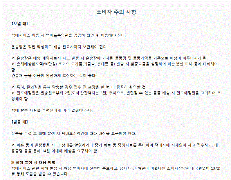 마지막으로 택배서비스 이용 시 주의사항입니다