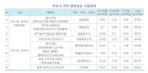 분유 10종과 이유식 8종을 대상으로 미생물 및 영양성분 분석을 실시하였습니다