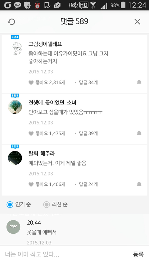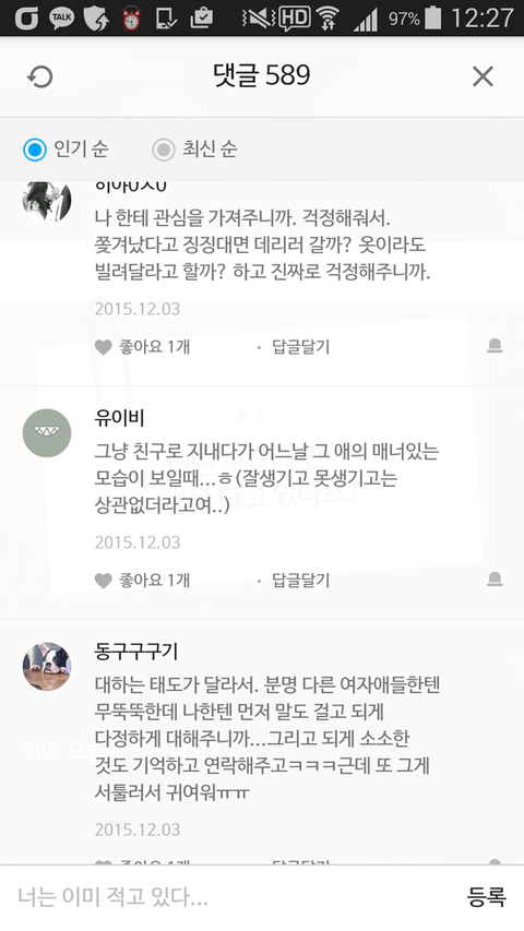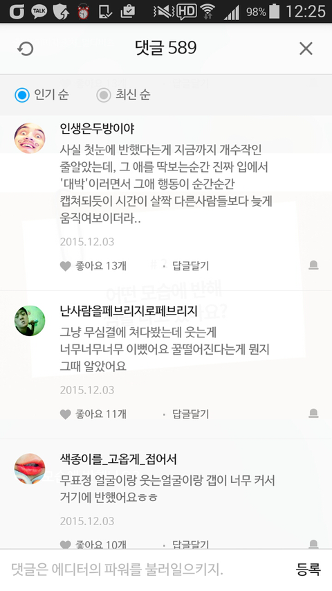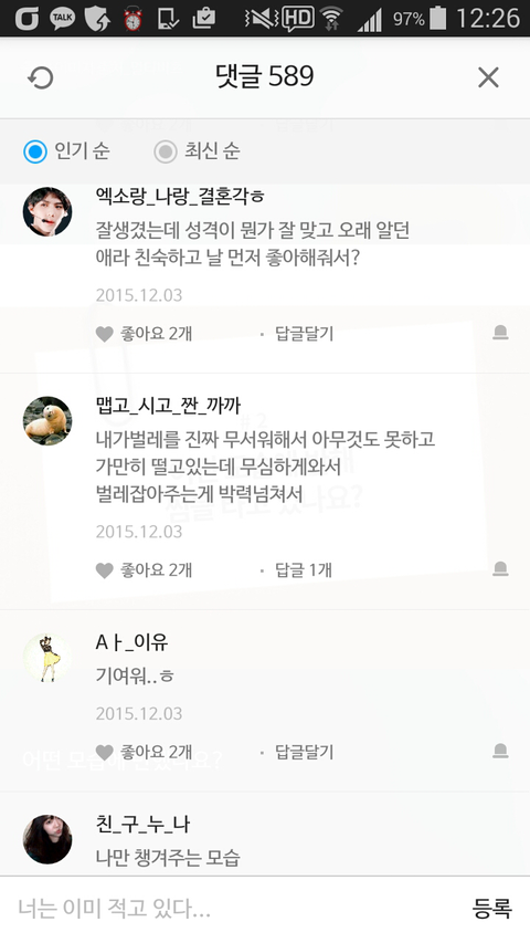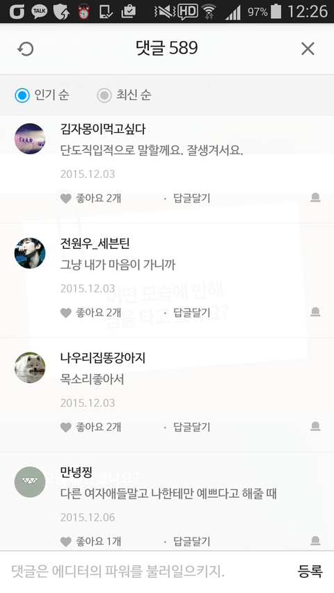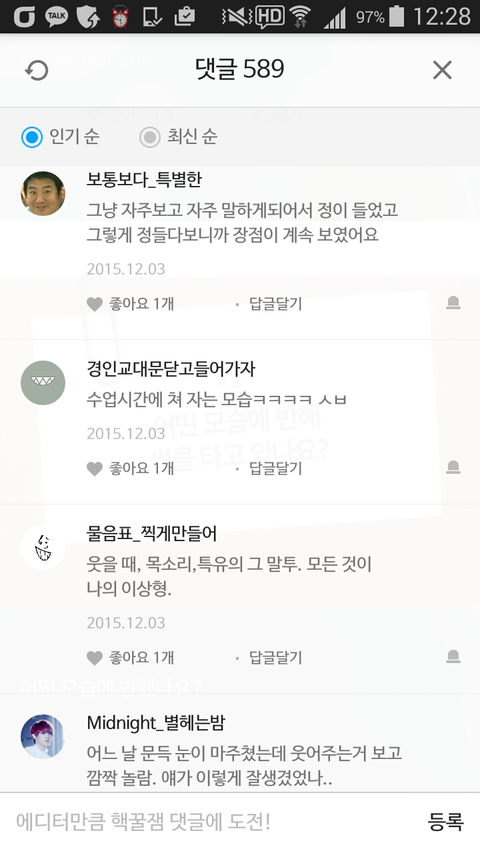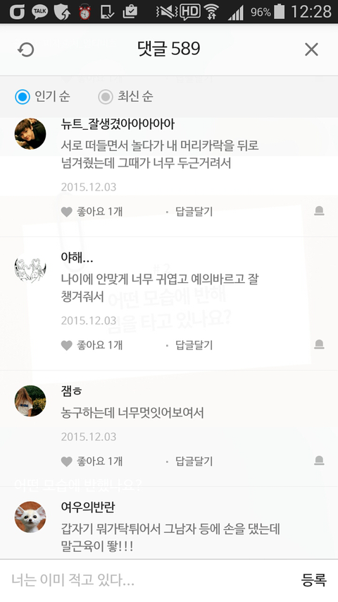 댓글 많은 톡