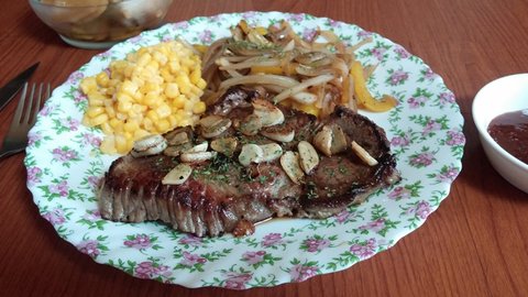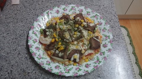 특히 오른쪽은 양파, 옥수수, 감자 깔고 그냥 케찹 뿌린 거임.