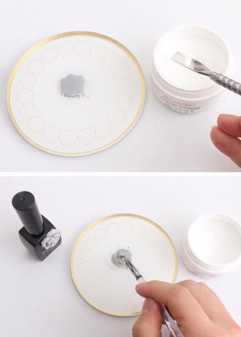 점도가 좀 걸쭉하게 나올때까지 아크릴 파우더를 젤 컬러에 섞어주세요..!