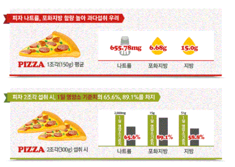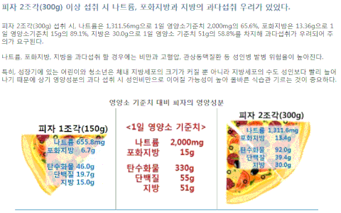 피자 2조각 이상 먹을 시에는 과다 나트륨, 과다 포화지방이 우려된다고 합니다!