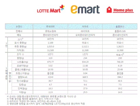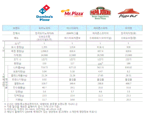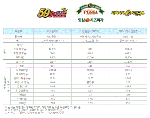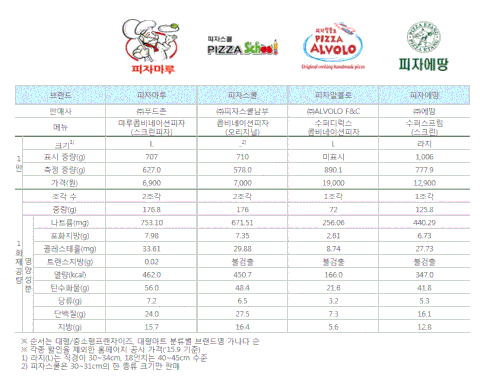 잔인한 이야기지만 소비자원에서 14개 브랜드의 피자의 영양정보를 공개했습니다