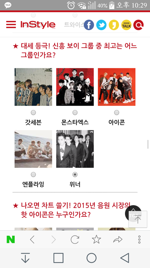 근데 이번에 최고의 신흥대세아이돌? 부문에 위너,