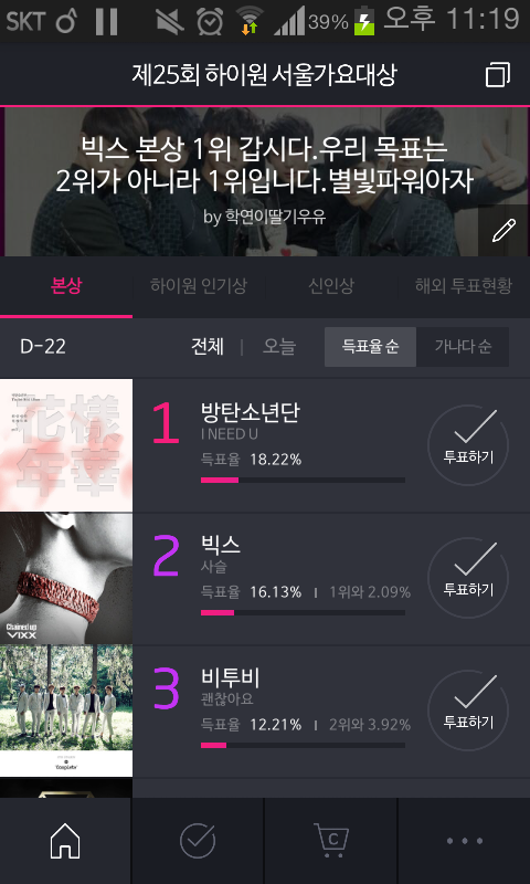 아미들 모두 스밍과 투표 댓글 릴레이 할까?