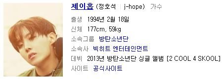 일단 제이홉에 대해 잘 모르는 사람들을 위하여 간략하게 프로필 소개를 하자면,