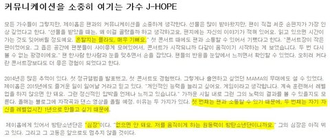 인터뷰 내용만 봐도 지금의 제이홉이 있기까지 얼마나 많은 노력을 했을지 느껴지더라...