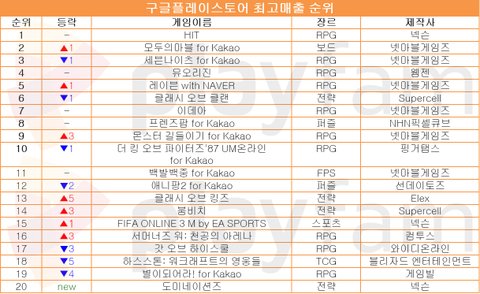 넥슨의 'HIT'가 굳건히 1위를 지키고 있다. 'HIT'는 지난 16일 첫 번째 대규모 업데이트를 진행하며 자신의 입지를 굳혔다.