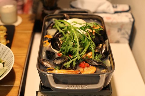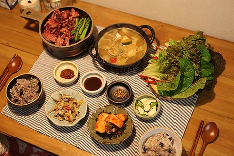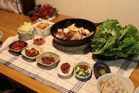 갈비 굽고 홍합탕 하고 집어먹기 좋은 쌈밥 만들기