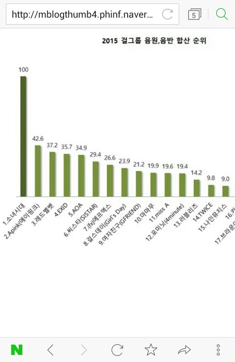 2015 걸그룹 음원음반 매출순위 (똥핑개털림)