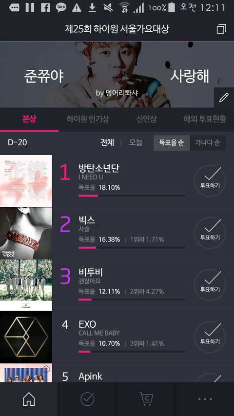 격차가 너무 좁혀짐....혹시 아까 10시 총공 못 한 아미는 1시 총공 부탁해!!