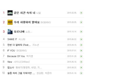 네이버 뮤직 연간 TOP10 엑소!!!!!!