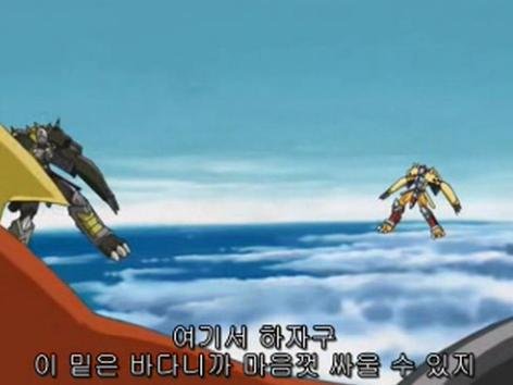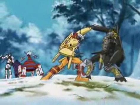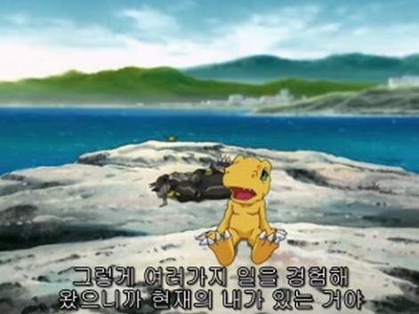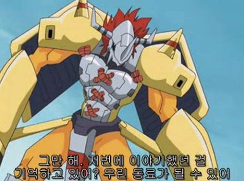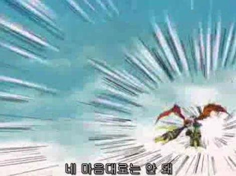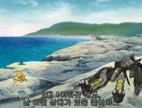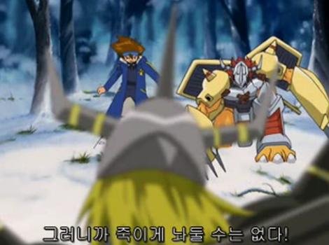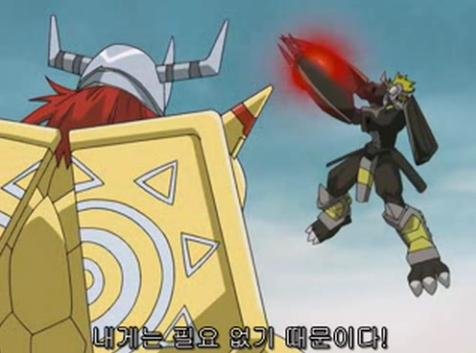 블랙워그레이몬을 말릴수 없었던 아구몬. 워그레이몬으로 진화해서 상대