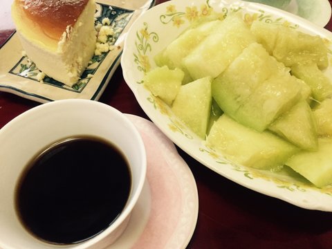 요건 식사 다 하고 난 뒤에 후식으로 먹은 커피랑 과일 케익 ㅎㅎ