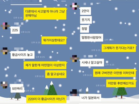 2.재구매를 하려고 판매자에게 카톡을 함(현재 구입 가능한 스니커즈는 재질변경으로 가격이 높아졌고, 이사실을 알고 있었음)