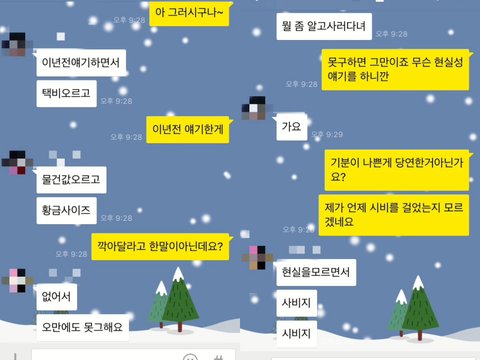 맨날 구경만 하다가 처음으로 글을 써보려 합니다ㅜㅜ 두시간 전에 진상손님이 되버린 제 이야기 한번 들어보실래요..? 내용 설명후 카톡사진 첨부하겠습니다