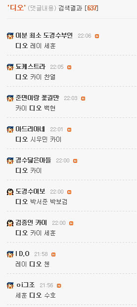 22:01부터 빼면 디오 633, 세훈 633 동점
